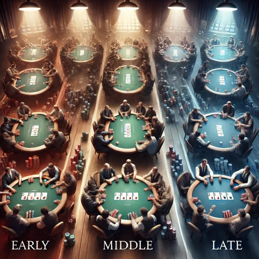 포커 토너먼트 초반, 중반, 후반 운영법: 전략적 접근